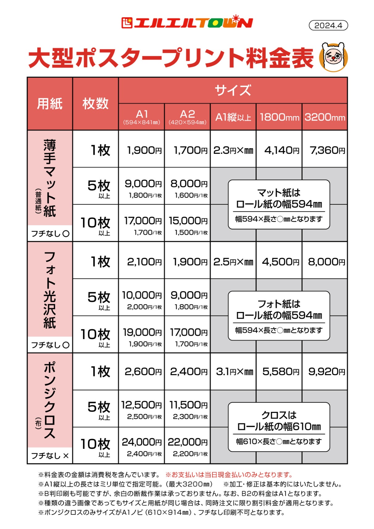 ※余白等のカット、ラミネート加工はできません。